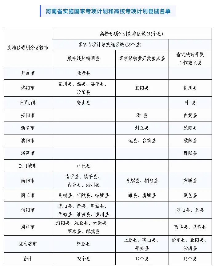 附件:河南省實(shí)施“國(guó)家專項(xiàng)計(jì)劃”和“高校專項(xiàng)計(jì)劃”縣域名單
