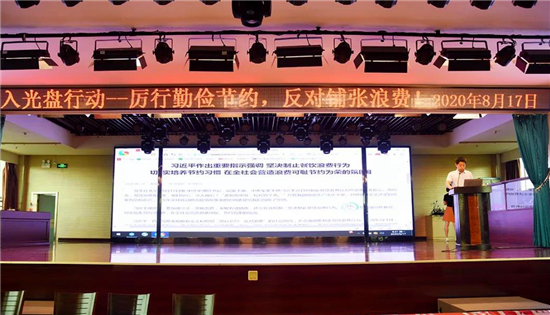 與會(huì)人員首先學(xué)習(xí)了習(xí)近平總書記關(guān)于“厲行勤儉節(jié)約、反對(duì)鋪張浪費(fèi)”的重要指示精神。習(xí)近平總書記指出,餐飲浪費(fèi)現(xiàn)象,觸目驚心、令人痛心!“誰知盤中餐,粒粒皆辛苦?!北M管我國糧食生產(chǎn)連年豐收,對(duì)糧食安全還是始終要有危機(jī)意識(shí),今年全球新冠肺炎疫情所帶來的影響更是給我們敲響了警鐘。習(xí)近平強(qiáng)調(diào),要加強(qiáng)立法,強(qiáng)化監(jiān)管,采取有效措施,建立長效機(jī)制,堅(jiān)決制止餐飲浪費(fèi)行為。要進(jìn)一步加強(qiáng)宣傳教育,切實(shí)培養(yǎng)節(jié)約習(xí)慣,在全社會(huì)營造浪費(fèi)可恥、節(jié)約為榮的氛圍。