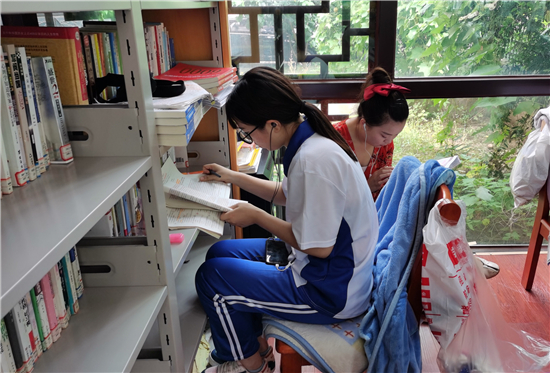 自進(jìn)入暑假以來(lái),市圖書館接待人數(shù)居高不下,其中學(xué)生居多。不少學(xué)生來(lái)此學(xué)習(xí)、寫暑假作業(yè),他們感到圖書館環(huán)境靜謐,有學(xué)習(xí)氛圍。在市區(qū)的各個(gè)智慧圖書館內(nèi)有時(shí)還會(huì)出現(xiàn)了“一座難求”的現(xiàn)象。但大家都自覺(jué)遵守圖書館的紀(jì)律,沒(méi)有一絲噪音。