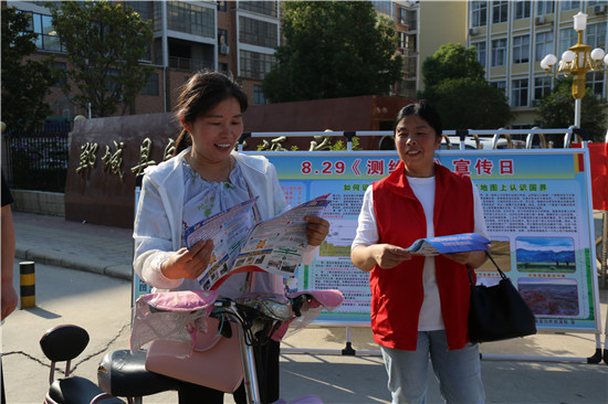 8月28日,在8月29日測(cè)繪法宣傳日到來之際, 鄲城縣自然資源局立足實(shí)際,層層發(fā)動(dòng)、主動(dòng)創(chuàng)新、多措并舉,緊緊圍繞“規(guī)范使用地圖,一點(diǎn)都不能錯(cuò)!”這一宣傳主題,開展了測(cè)繪法宣傳日暨國(guó)家版圖意識(shí)志愿宣傳周活動(dòng)。
