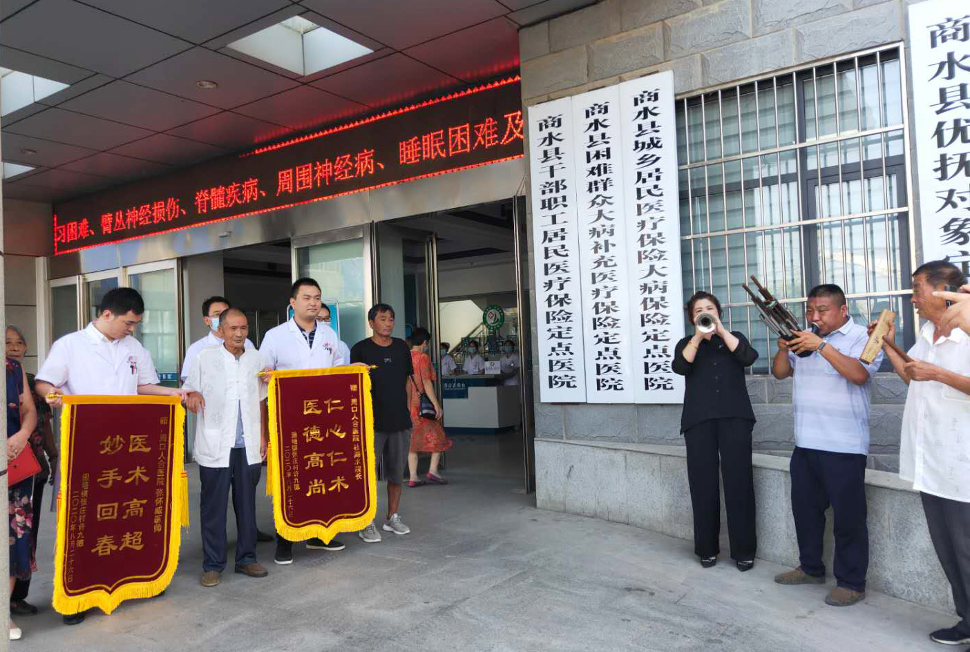 “醫(yī)術醫(yī)風醫(yī)德好,俺給好醫(yī)生送錦旗”,歡快高昂的嗩吶聲響徹周口人合醫(yī)院急診部門前,嗩吶手以歡快的音樂表達著感激的話語,8月27日上午10時,來自商水縣固墻鎮(zhèn)張莊村的許九德老人帶著家人和一班嗩吶手,來到周口人合醫(yī)院送來錦旗,以農(nóng)民最樸實的方式表達自己的謝意。