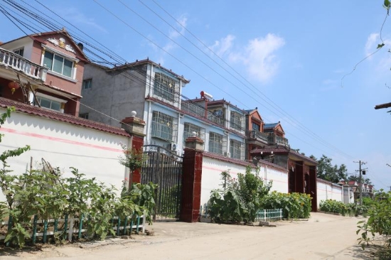 該鎮(zhèn)完樓村是袁征口中的4.0版鄉(xiāng)村振興的最具代表性的村落之一。完樓行政村轄完樓、完天齊廟、黃盆窯、代洼、代小莊、許莊、吳菜園、付樓、劉莊9個自然村,耕地面積3331畝,總人口3100余人。2018年那次村委換屆,常年經營鋼材生意的許天勇被大伙推選為村支部書記,成了該村的致富領頭雁。