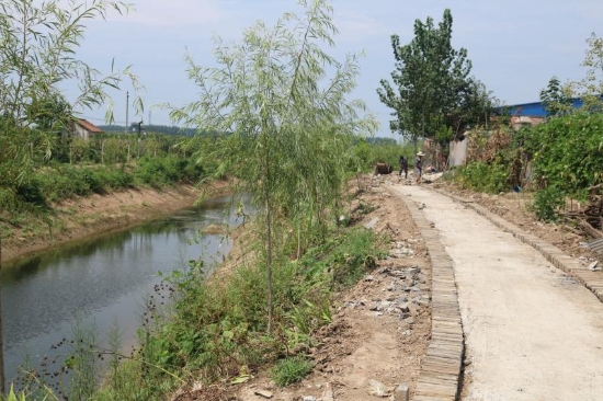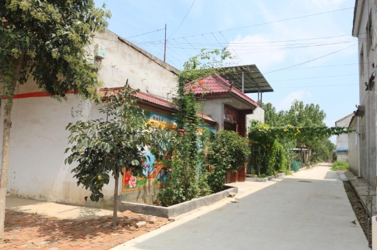 “整治后的坑塘邊綠村成蔭,不時有小鳥掠過水面又飛回樹梢;村頭巷尾、花開四季,孩童們在村中追逐嬉鬧,老人們在村道上怡然自得地徜徉散步,歡笑不斷;群眾文化廣場上,村民集聚在這里休閑、娛樂、健身,成了村里人氣最旺的地方。”另一個具有代表性的鄉(xiāng)村振興新版本是馬鋪鎮(zhèn)最南端軍吳行政村,這個村子位于惠濟河北岸,207省道橫穿南北,轄軍吳,高口,高莊,吳樓,許莊,王莊,豆腐營七個自然村,耕地面積4288畝,總人口數4236人。近年來,這個村子除大力發(fā)展中藥材、蔬菜等經濟作物種植外,還以“二四四”工程和“雙強”村創(chuàng)建為抓手,開展“美麗鄉(xiāng)村”行動,打造美麗庭院,對村中主次道路進行硬化、綠化、美化、亮化,發(fā)展以生態(tài)為底色的宜居宜游農旅村落,成為鹿邑縣首批“千萬工程”示范村。