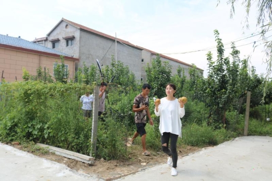 上任伊始,許天勇充分利用水域面積大的優(yōu)勢,發(fā)展鄉(xiāng)村旅游經濟,把整理出來的水域種上了荷花,放上了魚苗,在村里還建起了四橦民宿建筑,在廣場邊村里統一管理的一處民宿內興辦了特色餐飲,讓來這里垂釣的人有得玩、有得吃、還有得住。許天勇指著許莊村頭的一處坑塘說:“這是我們治理出來比較大的一處,鎮(zhèn)里牽頭在坑塘兩側建起了扶貧富民冷庫,還建成1200多平方米的游園、近3000平方米的垂釣園,另外,村里又把平整出14.2畝土地種上的梨樹,承包給村民進行果蔬間作,現在梨樹已進入盛果期,預計今年凈收益4萬元左右?!?/p>