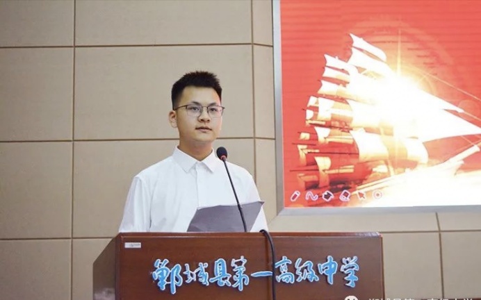 在發(fā)言環(huán)節(jié),2020屆優(yōu)秀畢業(yè)生代表、考入清華大學的宋帥,在校生代表、三(32)班學生仵家豪,家長代表、考入北京大學的張玨的父親張衛(wèi)東,教師代表、2020屆高三教師靳亭分別作了發(fā)言。