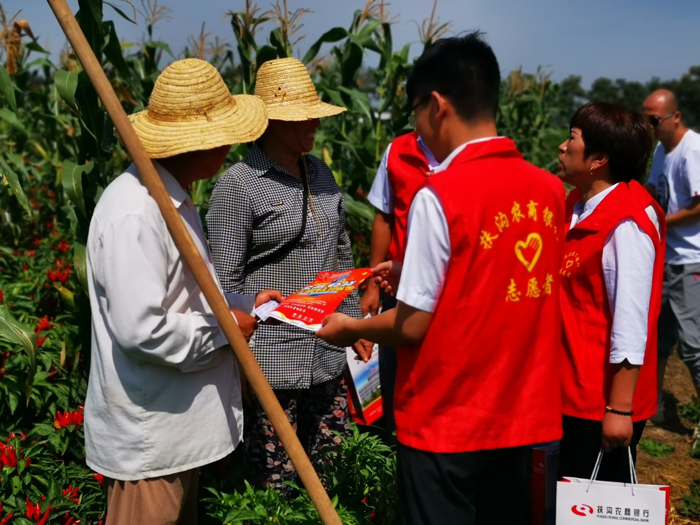9月5日,扶溝農(nóng)商銀行大新支行“紅馬甲”們結合金融知識普及月深入田間地頭為老百姓送上金融服務和金融知識,深受村民的歡迎。