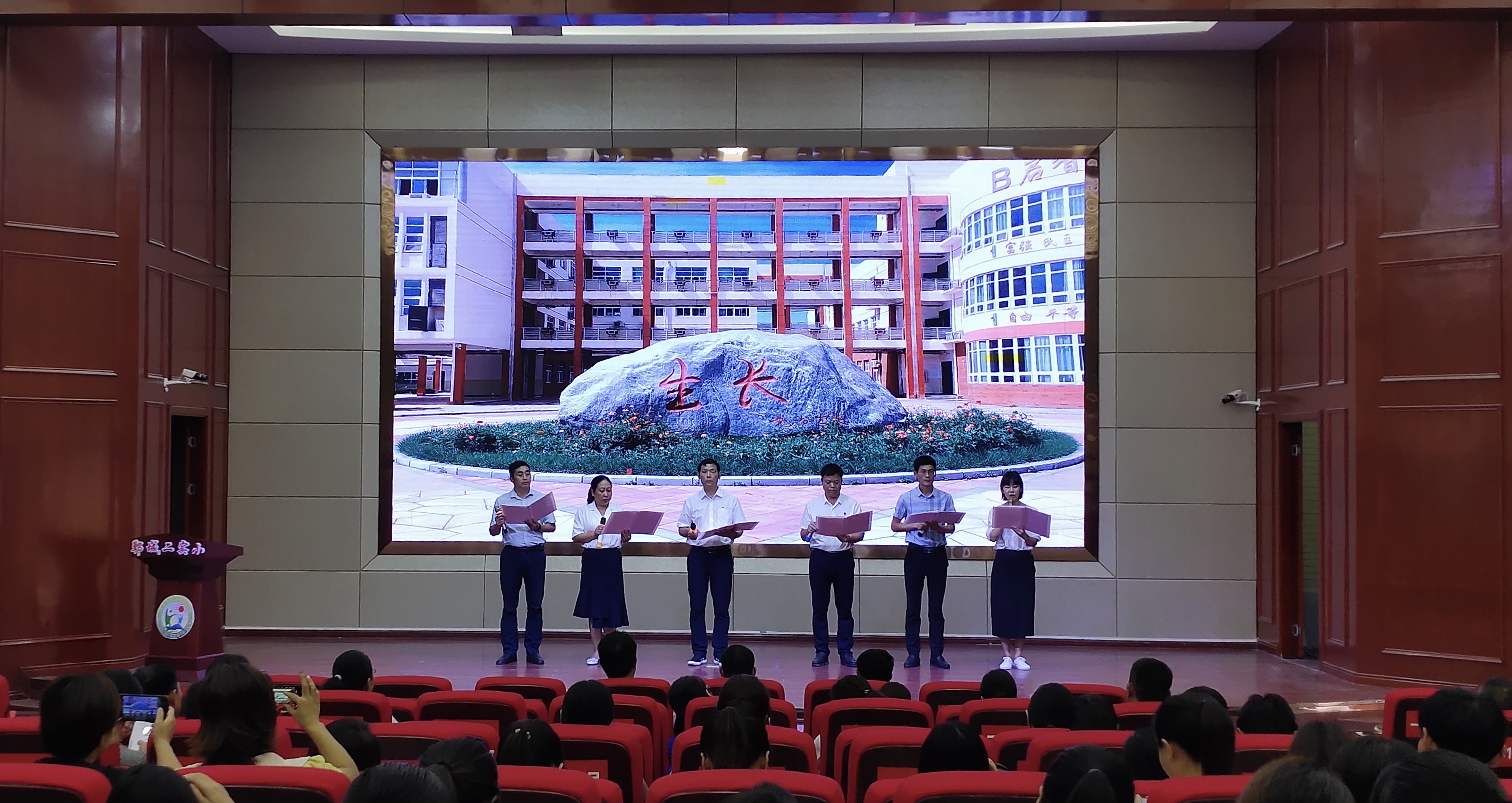 該校校長陳勇帶領(lǐng)校委會成員朗誦《校園和諧贊歌》拉開了本次慶祝會的帷幕。
