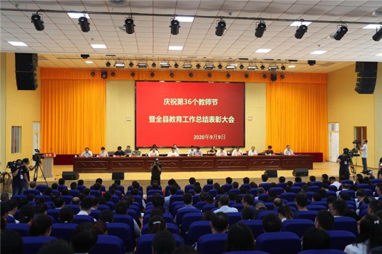 全縣各鄉(xiāng)鎮(zhèn)黨委書(shū)記和主抓教育副鄉(xiāng)鎮(zhèn)長(zhǎng),縣直各單位主要負(fù)責(zé)人,教體局班子成員及各股室負(fù)責(zé)人,各鄉(xiāng)鎮(zhèn)中心校校長(zhǎng)、局直學(xué)校校長(zhǎng),中小學(xué)校長(zhǎng)代表,優(yōu)秀教師代表、學(xué)生代表等1100人共同慶祝第36個(gè)教師節(jié)暨全縣教育工作總結(jié)表彰大會(huì)。