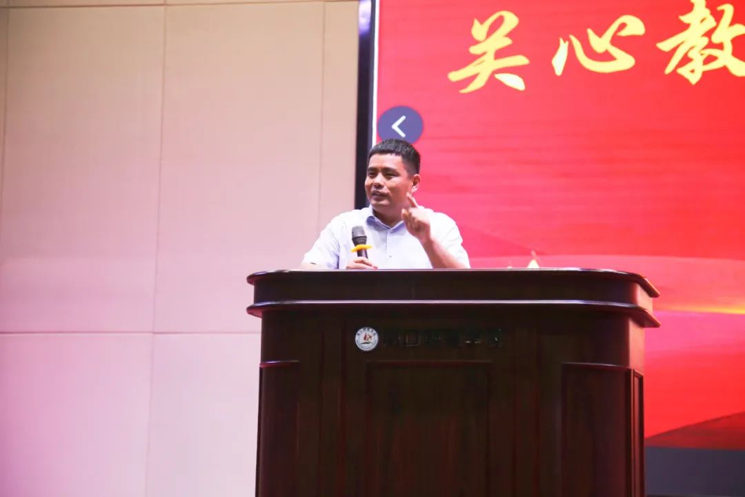 新星學(xué)校董事長(zhǎng)劉永文作回憶了自己辦學(xué)的艱辛歷程和初心,講了自己作為一名老師至今對(duì)教師崗位的眷戀和熱愛(ài);表達(dá)了對(duì)教師這個(gè)群體的深情,表達(dá)了他對(duì)教師群體要盡綿薄之力的心愿。他的講話真誠(chéng)坦率,侃侃而談,贏得了一陣陣掌聲。