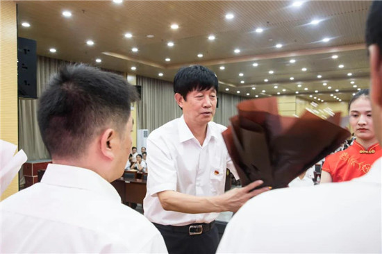羅明黨宣讀鄲城縣教育體育局對鄲城二高趙耀校長的賀信。局黨組向鄲城二高取得優(yōu)異成績的莘莘學(xué)子表示熱烈祝賀,向辛勤耕耘的全體教職員工表示衷心感謝和親切慰問,并希望二高面對高考改革的滾滾大潮和人民群眾對優(yōu)質(zhì)教育的迫切需求,認(rèn)真總結(jié)經(jīng)驗,堅定辦學(xué)信念,瞄準(zhǔn)更高目標(biāo),進一步深化管理改革,優(yōu)化教學(xué)方法,豐厚教育內(nèi)涵,提升辦學(xué)水平,為推動鄲城教育高質(zhì)量發(fā)展再添重彩、再立新功!