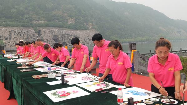 受郭泰森影響,村里不少農(nóng)民也想學(xué)習(xí)畫牡丹,在當(dāng)?shù)卣闹С趾蛶椭拢┥e辦了牡丹畫免費培訓(xùn)班、畫師培訓(xùn)班,參加培訓(xùn)的學(xué)員場場爆滿。如今,平樂鎮(zhèn)牡丹畫師已發(fā)展到1000余名,形成了包括培訓(xùn)創(chuàng)作、裱畫包裝、推介營銷、研學(xué)旅行等相對完整的產(chǎn)業(yè)鏈,帶動相關(guān)從業(yè)人員5000余人。