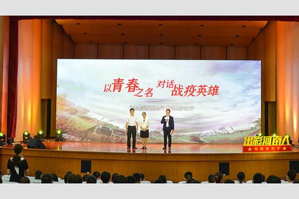 活動化疫情危機為教育契機,以“出彩河南人”楷模發(fā)布廳特別節(jié)目為藍本,以開放式思政課為主要模式,以先進典型事跡為支撐點,通過“情景再現(xiàn)+互動交流+點評總結(jié)”的方式,邀請河南省出席全國抗擊新冠肺炎疫情表彰大會的先進代表與青年學(xué)生交流,分享現(xiàn)場感受,暢談心得體會,為學(xué)生上了一堂愛國主義教育課、思想政治理論課、科學(xué)精神養(yǎng)成課,引導(dǎo)學(xué)生與時代同步伐、與人民共命運、同祖國共成長。此外,活動還突出典型人物與學(xué)生互動,回答學(xué)生現(xiàn)場提問和網(wǎng)絡(luò)留言,引導(dǎo)學(xué)生分享自己和身邊的典型故事,用藝術(shù)形式展示呈現(xiàn),激勵師生堅持遠大理想、擔(dān)負時代使命、書寫絢麗華章,在偉大祖國復(fù)興的壯闊征程激揚青春力量、放飛絢爛夢想。