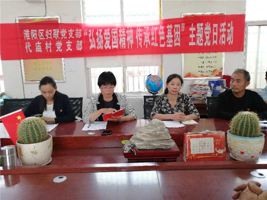 為進(jìn)一步教育引導(dǎo)黨員、干部弘揚(yáng)愛國精神,傳承紅色基因,夯實(shí)基層黨支部戰(zhàn)斗堡壘和黨員先鋒模范作用。9月22日(農(nóng)歷初六),淮陽區(qū)婦聯(lián)黨支部在幫扶村大連鄉(xiāng)代廟行政村,與該村黨支部共同開展“弘揚(yáng)愛國精神 傳承紅色基因”9月份主題黨日活動(dòng)。區(qū)婦聯(lián)全體黨員、代廟村黨支部在家黨員參加了活動(dòng)。