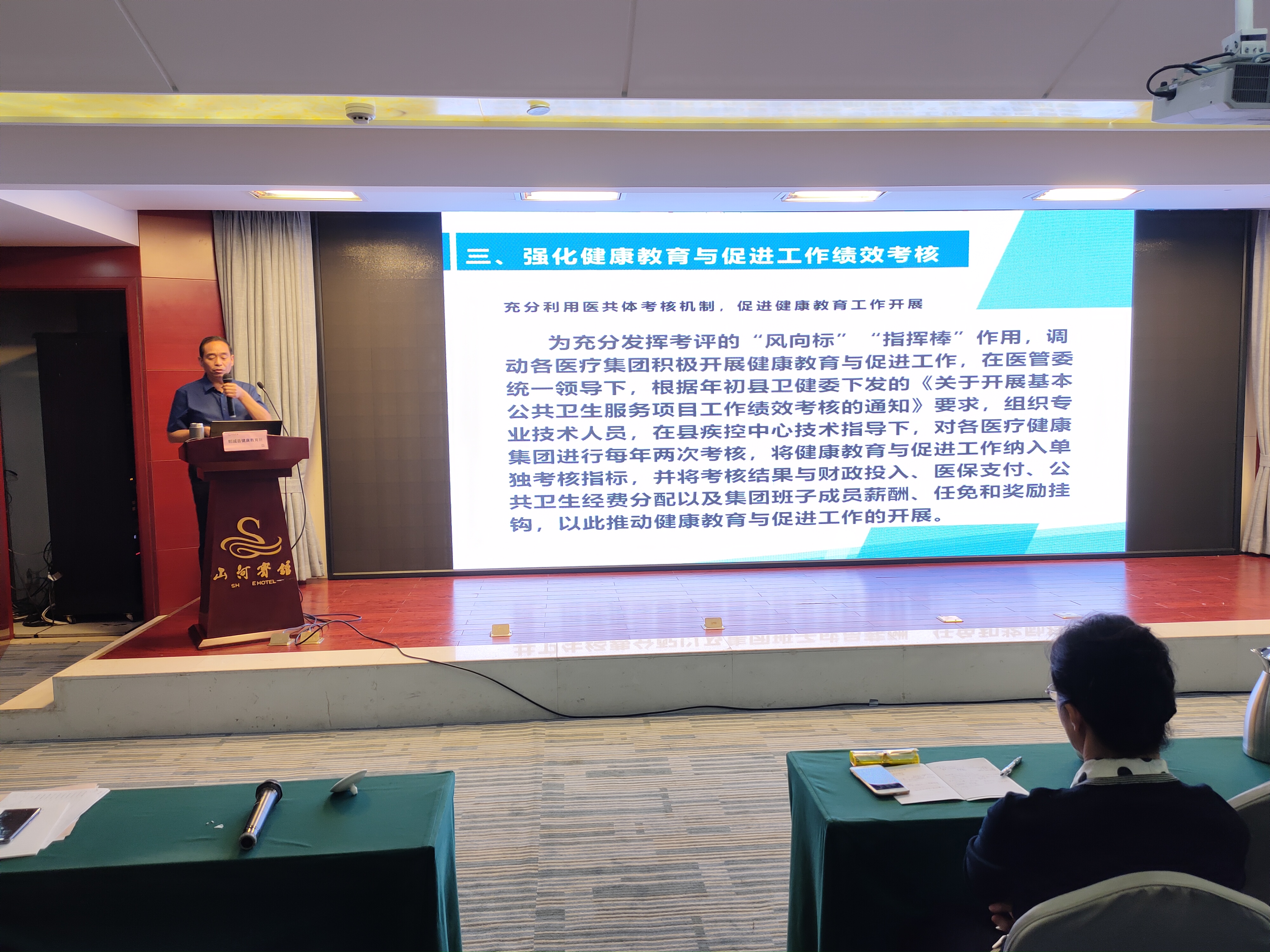 9月23日至24日,河南省疾病預(yù)防控制中心在鄭州舉辦基本公共衛(wèi)生服務(wù)健康教育工作能力培訓(xùn)班。鄲城縣受邀在會上作工作經(jīng)驗(yàn)交流,縣疾控中心主任張吉志以“高位推動 多措并舉 明確責(zé)任 重抓落實(shí)”為題,全面、詳細(xì)地介紹了在醫(yī)共體背景下健康促進(jìn)工作的開展情況。