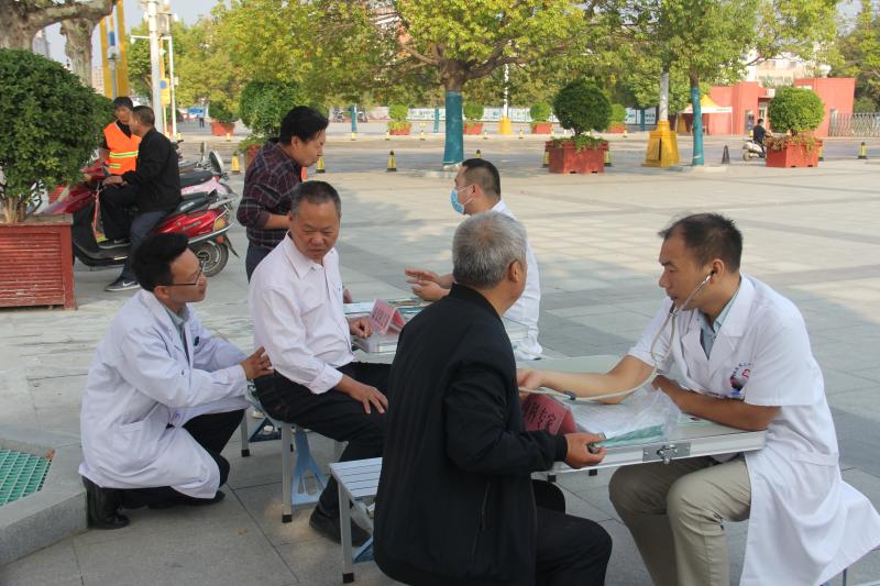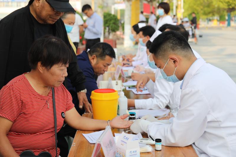 義診活動現(xiàn)場,通過懸掛主題宣傳橫幅、擺放健康知識宣傳展板、設(shè)置義診咨詢服務(wù)臺、發(fā)放健康促進宣傳折頁等方式為群眾進行健康知識宣教。前來咨詢就診的群眾絡(luò)繹不絕,醫(yī)務(wù)人員熱情地為群眾提供免費測量血壓、血糖等服務(wù),耐心細(xì)致地解答群眾健康咨詢并給予診療建議,提醒平時多多加強鍛煉,注意健康飲食。