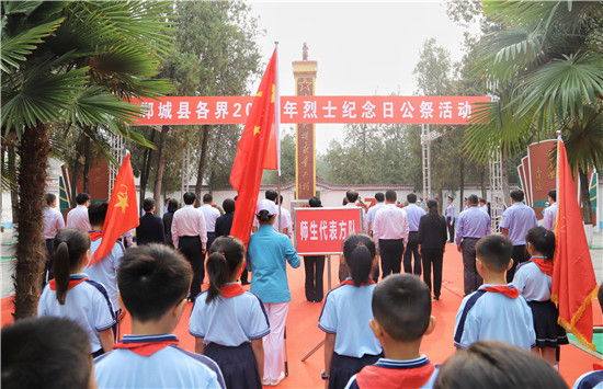 鄲城大地存浩氣,蒼松翠柏祭英烈。9月30日,鄲城縣在烈士陵園舉行2020年烈士紀(jì)念日公祭活動(dòng),市人大常委會(huì)副主任、鄲城縣委書記羅文閣,縣長(zhǎng)李全林,縣人大常委會(huì)主任李建軍,縣政協(xié)主席王偉等縣四個(gè)班子領(lǐng)導(dǎo),全縣副處級(jí)以上領(lǐng)導(dǎo)干部,縣直各單位負(fù)責(zé)人,23個(gè)鄉(xiāng)鎮(zhèn)辦負(fù)責(zé)人,退役軍人代表、師生代表和社會(huì)各界人士,一同祭奠革命先烈,激勵(lì)全縣上下不忘初心、牢記使命,為鄲城縣高質(zhì)量發(fā)展而不懈奮斗。