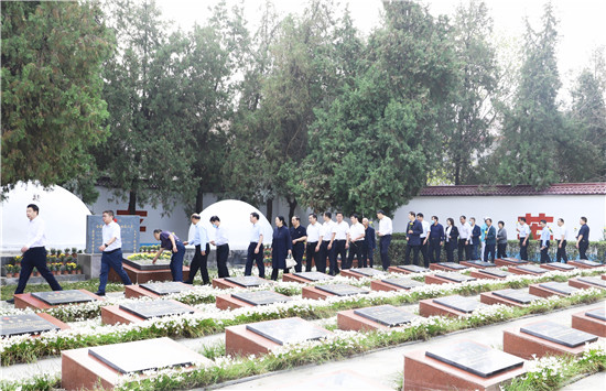 羅文閣緩步上前,代表縣四個(gè)班子仔細(xì)整理緞帶。全體人員面向烈士紀(jì)念碑行三鞠躬禮,并深情瞻仰烈士陵園,向英雄烈士獻(xiàn)上鮮花,表達(dá)對(duì)烈士的無限敬仰和哀思。①15