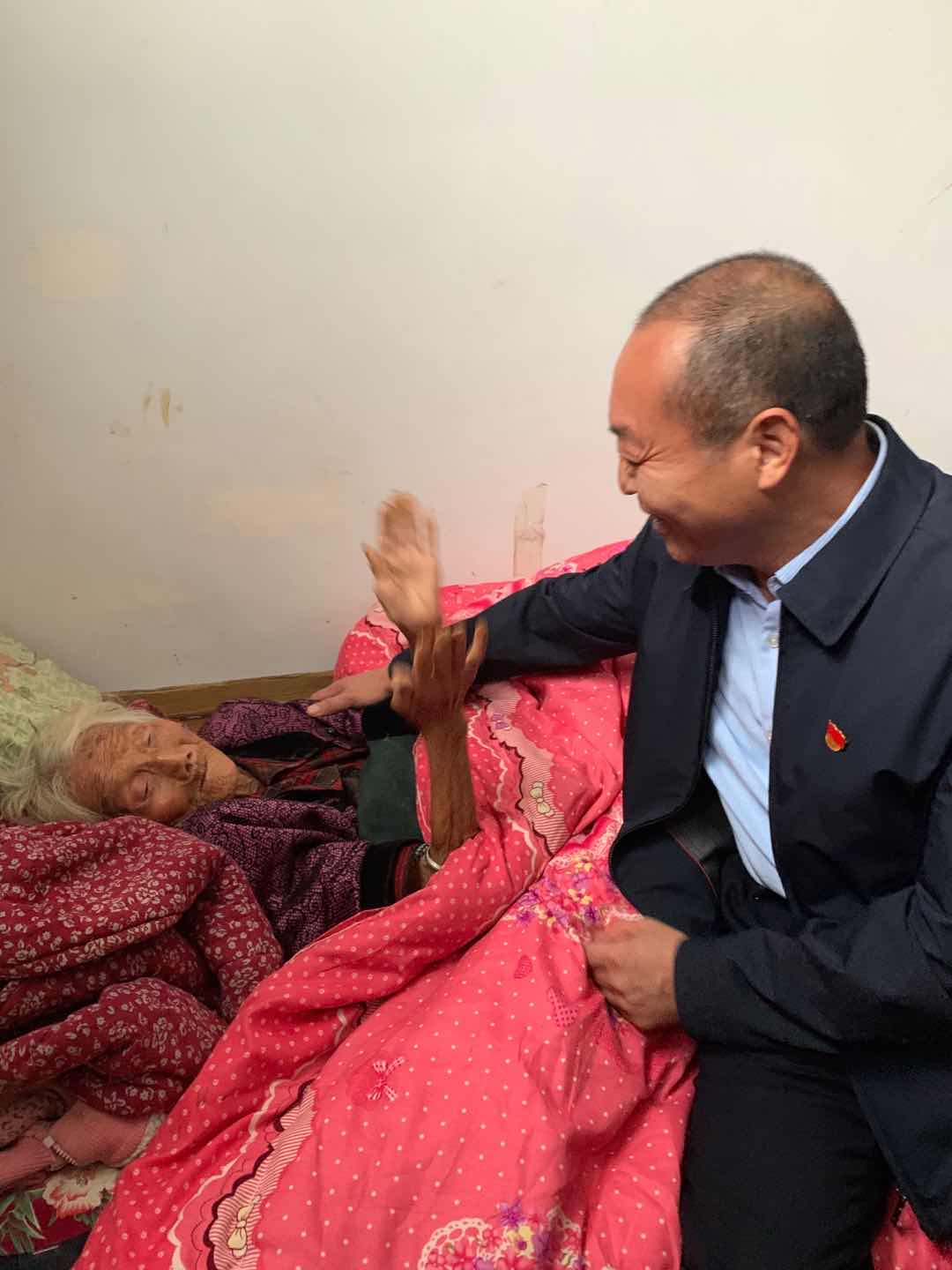 11時(shí)許,方凱一行來(lái)到大丁張村看望103歲的老人呂天。