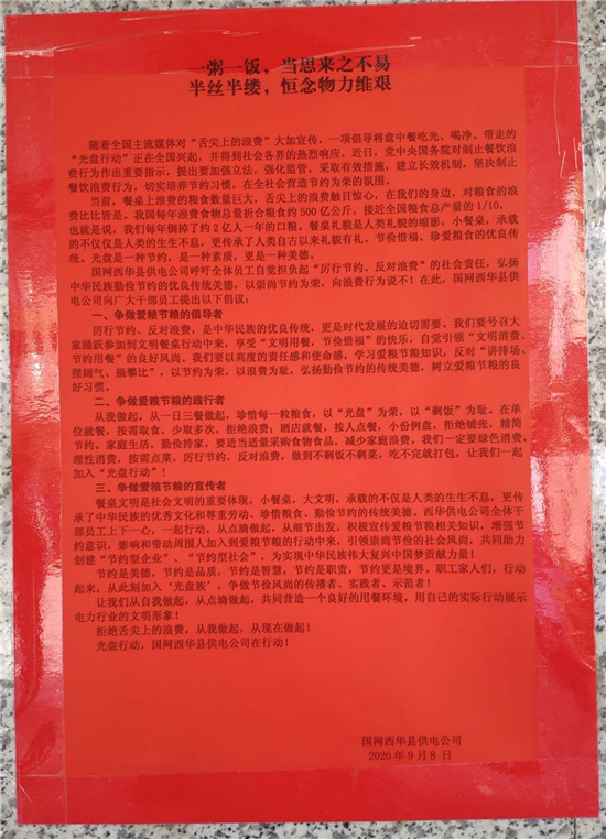 “節(jié)約糧食必須從我們自己做起,從身邊的人做起,更要從小事做起”。該公司職工紛紛表示,勤儉不是吃苦,“光盤”是節(jié)約,是習慣,是一種品質,更是對黨中央號召反對浪費的響應,對國網“三節(jié)約”精神的認真詮釋和體現(xiàn)!
