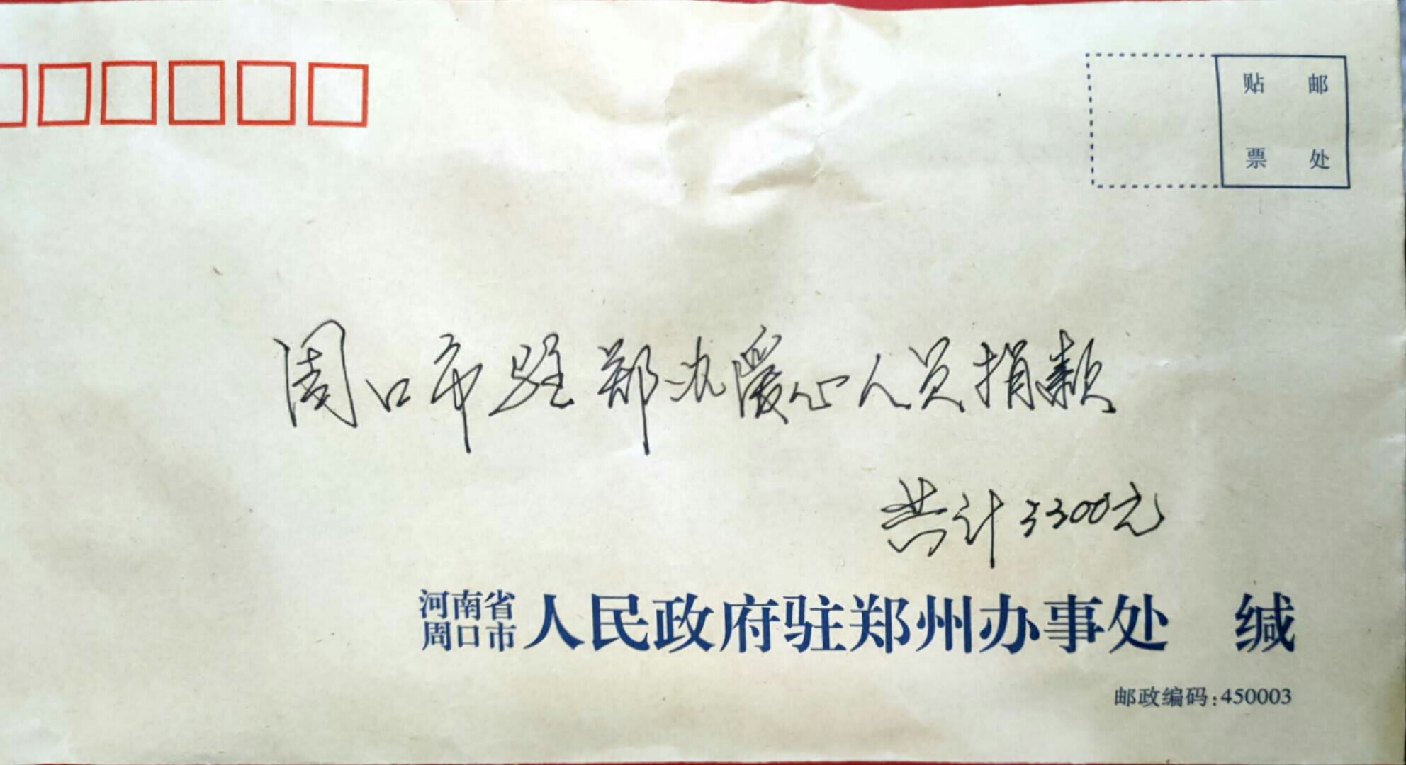 (周口市駐鄭辦職工在鄭大一附院,把捐款交到劉亞隆父親手中)