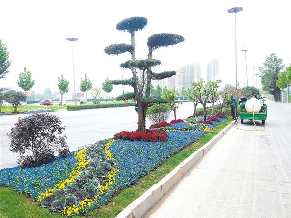 紅色、黃色、紫色的花兒,還有造型別致的景觀樹(shù)……10月21日,記者在周口中心城區(qū)七一東路的一處綠化帶內(nèi)看到一組造型別致的景觀造型,扮靚了綠化帶,給人耳目一新的感覺(jué)。記者 張洪濤 攝