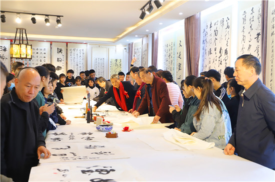 10月15日,重陽(yáng)節(jié)。中國(guó)書法之鄉(xiāng)鄲城縣書協(xié)主席巴云山和資深書法家張樹(shù)銀、杜長(zhǎng)青、崔傳明等人一道,在該縣八斗文化藝術(shù)中心舉行揮毫慶重陽(yáng)的義寫活動(dòng)。許多老藝術(shù)家和年輕學(xué)生歡聚一堂,過(guò)了一個(gè)別樣的重陽(yáng)節(jié)。