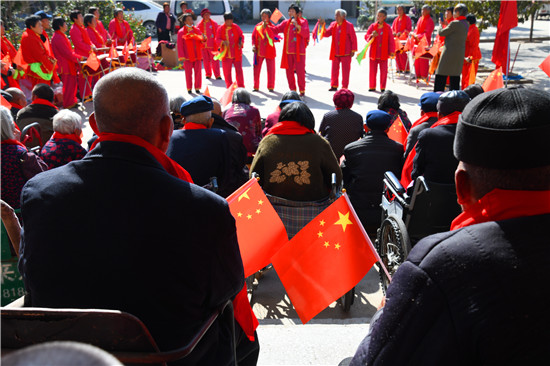 10月25日上午,商水縣練集鎮(zhèn)敬老院的院民自編自演文藝節(jié)目歡度重陽(yáng)節(jié)。