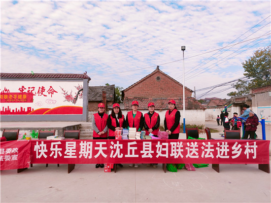 為助力鄉(xiāng)村振興,不斷提高廣大農村留守婦女的法律意識,切實解決她們生產生活中存在的法律難題,10月25日上午,沈丘縣婦聯(lián)借“快樂星期天公益行”主題活動之機,走進北城辦事處蘇樓村居委,對《民法典》《婦女權益保障法》《反家庭暴力法》《未成年人保護法》等有關法律法規(guī)進行宣傳,把法律服務送到群眾家門口。