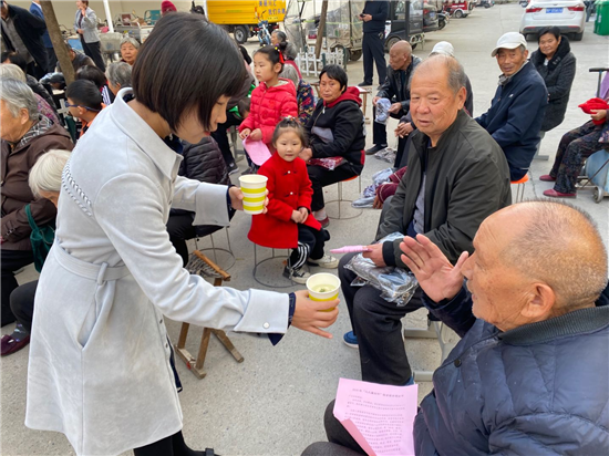活動現(xiàn)場熱鬧非凡,小橋街道辦黨工委書記侯明亮、主任王靜、人大工委主任張萬勝等為在場群眾發(fā)放了“敬老倡議書”,與大家共同品鑒菊花茶。同時,侯明亮為大家講述了重陽節(jié)的由來、傳說、習(xí)俗等傳統(tǒng)知識。大家為在場老人送上了精心準備的帽子、棉拖鞋、棉坐墊等小禮品,獻上了佳節(jié)祝福,讓老人們感受黨和政府的溫暖及濃濃的節(jié)日氣氛,讓德孝之風(fēng)成為普遍共識和自覺行動。