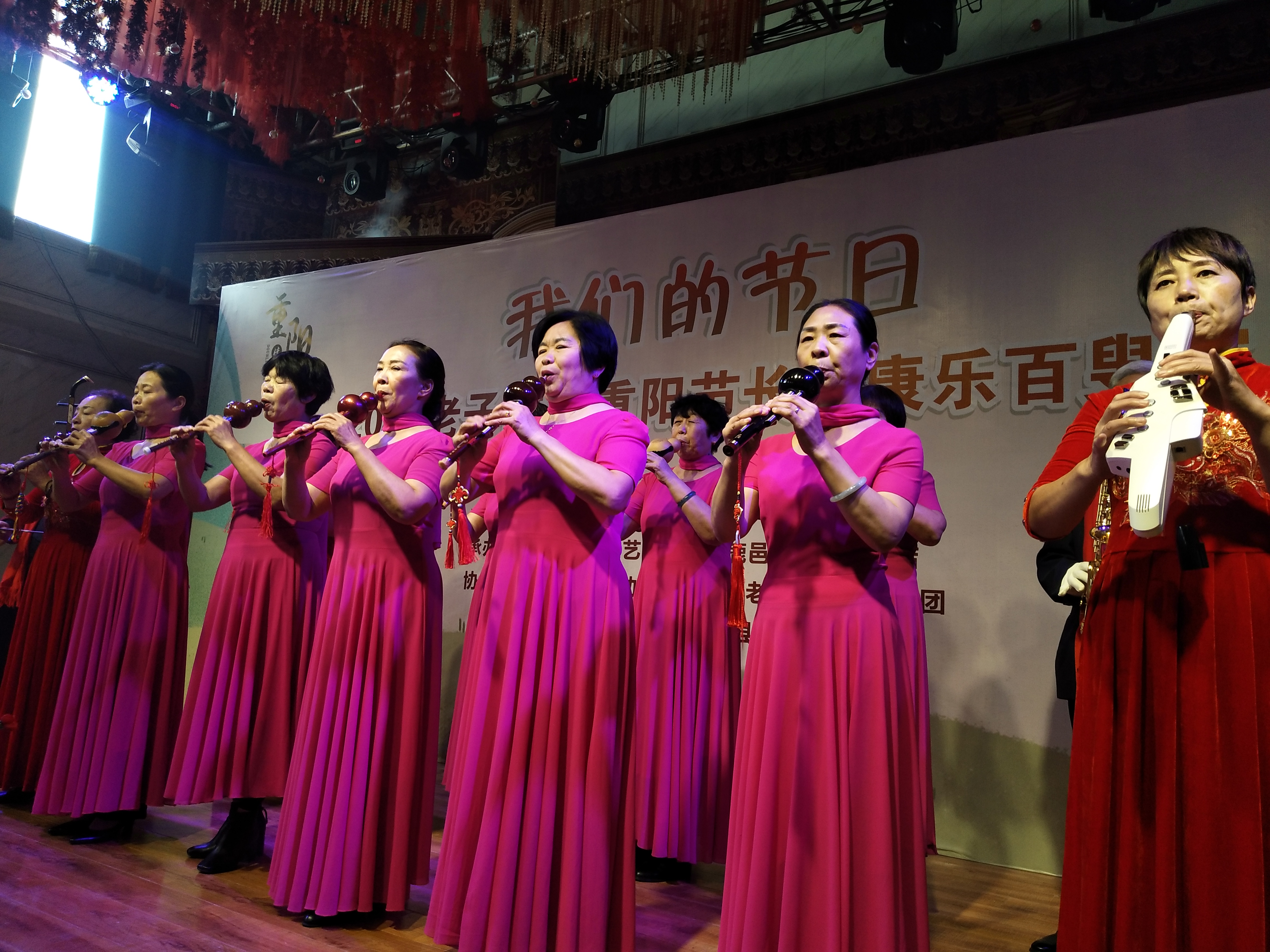 鹿邑縣舉辦的“我們的節(jié)日——2020老子故里長(zhǎng)安康樂(lè)百叟宴”于上午11時(shí)開(kāi)始,來(lái)自縣曲藝家協(xié)會(huì)、縣詩(shī)詞協(xié)會(huì)、縣書(shū)畫(huà)協(xié)會(huì)的老藝術(shù)家們進(jìn)行才藝展示,首先是縣老干部大學(xué)葫蘆絲隊(duì)表演了葫蘆絲合奏《花好月圓》《九月九的酒》,縣詩(shī)詞協(xié)會(huì)的翟明、張明山、林建華分別放聲朗誦了《重陽(yáng)禮贊》《我愛(ài)仙鄉(xiāng)的土地》《歡聚在長(zhǎng)安》,而縣曲藝家協(xié)會(huì)的史云龍表演的墜子《王華買(mǎi)爹》更是別有風(fēng)情……