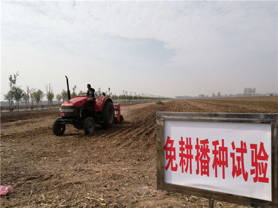 為實現(xiàn)藏糧于地、藏糧于技,商水縣聯(lián)合國家、省有關(guān)科研院校,成立農(nóng)業(yè)機(jī)械化耕種實驗基地,探索農(nóng)業(yè)發(fā)展新科技。農(nóng)技人員劉天華表示,免耕播種就是不用耕地直接播種小麥,這項技術(shù)試驗成功后,將大大節(jié)省小麥耕種時間,為搶農(nóng)時、搶墑情創(chuàng)造條件,對保障糧食安全有重要意義。