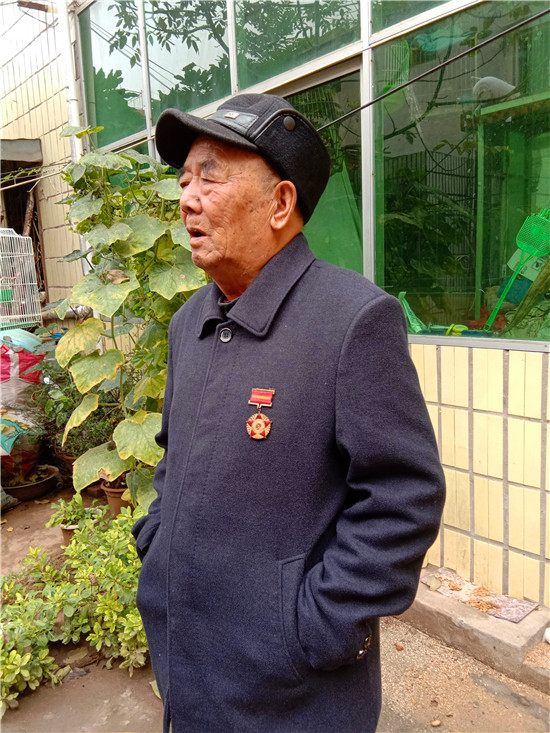 快到王景文家時,記者與他取得了聯(lián)系,沒想到他竟到路口來迎記者,看到他硬朗的身板和健康的身體,聽他說話聲音洪亮、底氣十足,記者還是很欣慰的,畢竟經歷了70年的風雨洗禮,還能行走自如、聲如洪鐘,的確是寶刀不老。被他迎進家,其老伴滿頭銀發(fā),喜瞇瞇地讓記者進屋,王老先生去里屋找出了一枚抗美援朝紀念章,并說抗美援朝和平紀念章等物品都放丟了,找不到了,有些遺憾。記者就開門見山地說要聽他講講參加抗美援朝的故事,他不好意思地笑了:“講不好,年齡大了,記性不好,有好多事都記不清了……”當問起他老家是哪里時,王老先生還是打開了話匣子。1934年,他出生在淮陽縣劉振屯鄉(xiāng)耿樓大隊李樓村,由于家境貧寒,他從小就跟隨家人一路逃荒要飯來到了扶溝,但日子還是艱難,為了能活命,父母無奈把他送給了扶溝縣城一戶人家,從此他就成了這戶人家的孩子,并于1951年5月結婚??山Y婚沒幾個月,縣里就開始征兵了。當兵離家,要丟下妻子,更何況妻子已有孕在身,他真舍不得;保家衛(wèi)國,是義務是責任是擔當,他責無旁貸。家與國,他毅然選擇去當兵。與新婚燕爾的妻子依依惜別,他踏上了行軍的征程。那時可沒有車接送,去往目的地,全靠兩條腿,行軍與訓練的苦與累難以想象。問他不害怕當兵打仗嗎?他回答:“不怕!”語氣堅定而有力。生活的磨難讓他對安穩(wěn)的生活有一種渴望,他明白戰(zhàn)爭會讓國家陷入混亂不堪的局面,老百姓的生活會更加艱難,為了祖國的和平安寧和兄弟姐妹的幸福,他愿意去當兵打仗。保家衛(wèi)國的種子早已種在了他的心里。