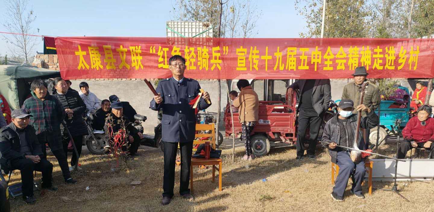 2020年10月26日至29日,黨的十九屆五中全會在北京召開,全會審議通過了《中共中央關(guān)于制定國民經(jīng)濟和社會發(fā)展第十四個五年規(guī)劃和二Ο三五年遠景目標的建議》,這是我國奪取全面建設(shè)社會主義現(xiàn)代化國家新勝利的綱領(lǐng)性文件。作為宣傳陣地的文藝輕騎兵,太康縣文聯(lián)迅速組織太康縣民間文藝家協(xié)會、太康縣曲藝家協(xié)會、太康縣文藝志愿者協(xié)會的藝術(shù)家組建文藝“紅色輕騎兵”在全縣開展黨的十九屆五中全會精神的宣傳活動。
