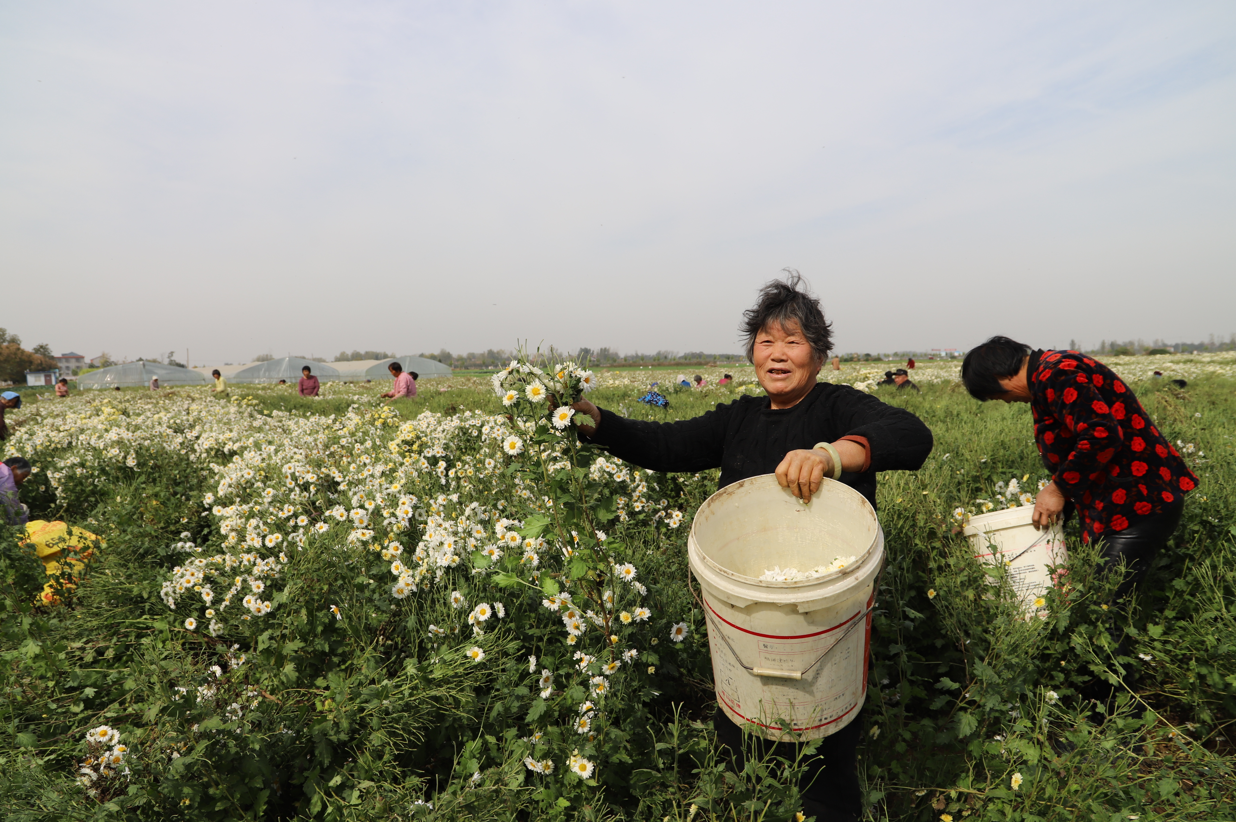 原來,菊花田的老板叫晉振中,于2018年從全縣脫貧攻堅(jiān)種植信息渠道得知種菊花能致富,銷售的末端是安徽亳州的藥材市場(chǎng)和一些花茶商家。特別是種植方式和平原種植紅薯一樣,把田地打成壟,栽苗、施肥、澆水、除草,9月份采摘一次、11月份采摘一次,剩下的菊花秸稈粉碎到田間作為肥料,還能種植晚小麥,十分方便。于是,他通過鎮(zhèn)村兩級(jí)黨員干部協(xié)助流轉(zhuǎn)了100畝土地,2019年就掙了20多萬元。由于晉菜園村是貧困村,在他的菊花田務(wù)工的勞動(dòng)力大多是貧困戶,能帶動(dòng)近百戶貧困戶脫貧致富,晉振中欣慰地覺得自己為脫貧攻堅(jiān)做了一份大貢獻(xiàn)。