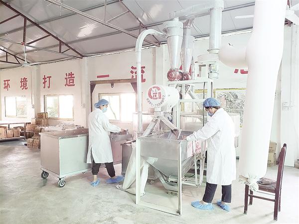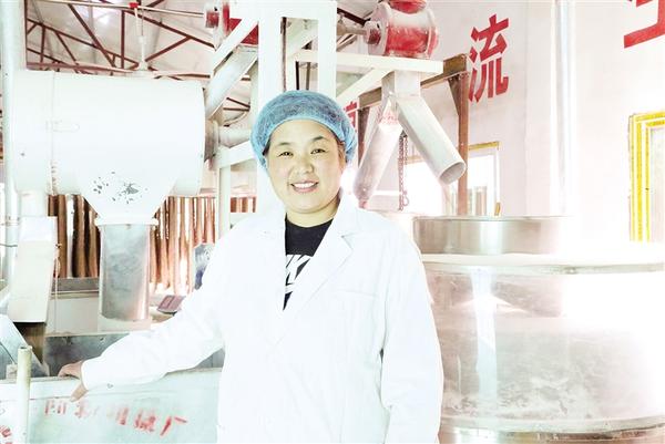 喜俊喜家庭農場總經理王春麗在黑小麥面粉生產車間。