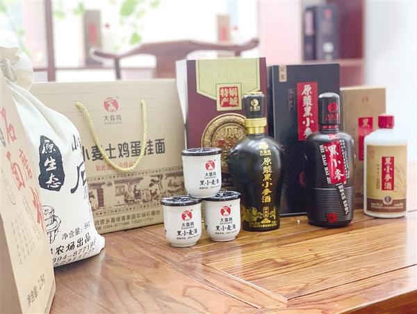 喜俊喜家庭農場生產的黑小麥酒、大喜崗土雞蛋、大喜崗黑小麥面粉等系列明星產品。