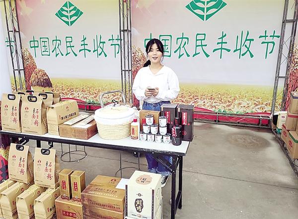喜俊喜家庭農場生產的黑小麥系列產品參展西華縣農民豐收節(jié)。