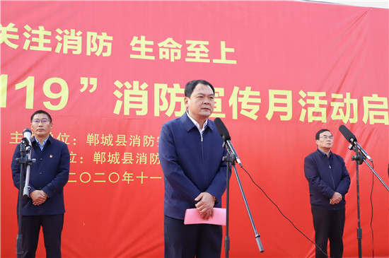 11月11日,鄲城縣在世紀(jì)廣場舉行2020年消防宣傳月活動啟動儀式,目的是進一步提高全民消防安全意識,促使“關(guān)注消防 生命至上”的主題深入人心,廣泛發(fā)動社會各界關(guān)注消防、參與消防,營造良好的宣傳氛圍,預(yù)防和減少火災(zāi)事故發(fā)生,確保人民群眾生命財產(chǎn)安全。縣長李全林出席會議并宣布消防宣傳月活動啟動,縣委常委、常務(wù)副縣長胡友濤主持會議,縣領(lǐng)導(dǎo)謝超、王彪、陳鳳祥、李素梅及縣公安局政委趙紅建參加會議。