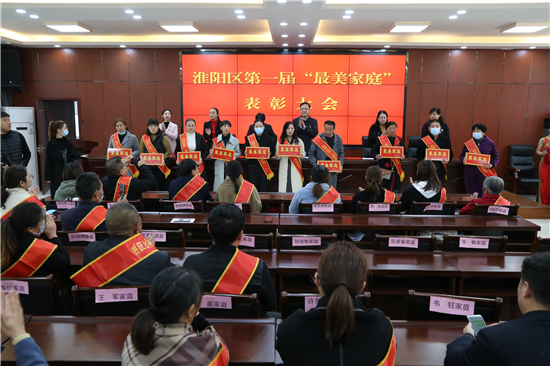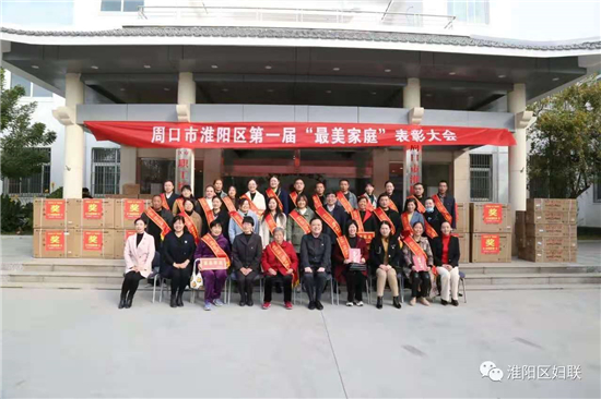 會(huì)議宣讀了《淮陽(yáng)區(qū)婦聯(lián)關(guān)于表彰第一屆“最美家庭”的決定》;與會(huì)領(lǐng)導(dǎo)為最美家庭進(jìn)行現(xiàn)場(chǎng)頒獎(jiǎng)、頒發(fā)證書和門牌;兩戶“最美家庭”代表分享了家庭故事。