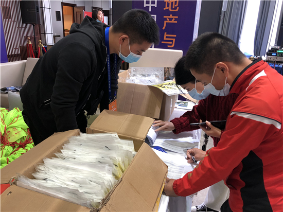 11月12日上午,記者在位于八一大道與文昌大道交叉口的佳利地產(chǎn)營(yíng)銷(xiāo)中心門(mén)口看到,今年由于疫情管控的需要,參賽選手領(lǐng)取裝備前需要先展示自己的健康碼,并配合醫(yī)護(hù)人員測(cè)量體溫,進(jìn)入現(xiàn)場(chǎng)還需戴口罩。在一樓活動(dòng)大廳,來(lái)自周口馬拉松協(xié)會(huì)的志愿者們先為選手確認(rèn)身份信息,再根據(jù)選手的身材、體型為其發(fā)放含有不同型號(hào)運(yùn)動(dòng)衣的背包。最終,每個(gè)參賽選手都會(huì)領(lǐng)到一個(gè)熒光綠色的小背包,里面裝有號(hào)碼布、參賽長(zhǎng)袖T恤、存衣包、手套、一次性風(fēng)雨衣和一本官方手冊(cè)等。