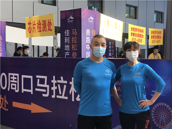 活動(dòng)現(xiàn)場(chǎng)前來(lái)領(lǐng)取賽前裝備的人源源不斷,有的是朋友結(jié)伴而來(lái),有的趁工作間隙而來(lái),還有的帶著孩子前來(lái),十分熱鬧。王勝利先生今年是第四次參加周口馬拉松賽了,他說(shuō):“2017年我跑了5小時(shí)30分,2018年是4小時(shí)28分,2019年跑了4小時(shí)17分,通過(guò)這幾年堅(jiān)持不懈地鍛煉,今年我想爭(zhēng)取跑到4個(gè)小時(shí)以內(nèi),不跟別人比,主要是不斷地自我超越!”今年的周口馬拉松賽還吸引了許多“都市麗人”參加,劉女士就是其中一員,“我今年36歲了,平時(shí)就非常喜愛(ài)健身、長(zhǎng)跑,今年是我第一次報(bào)名參加馬拉松賽,希望能夠挑戰(zhàn)自己?!彼嬖V記者。