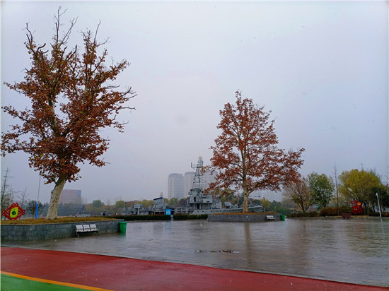 昨天剛過(guò)完小雪節(jié)氣,今天就下了一場(chǎng)雪。這場(chǎng)雪像是如期而至的約定,又似突如其來(lái)的驚喜,妝扮了整個(gè)城市。飛揚(yáng)的雪花落到地上,草葉上,枝頭上,瞬間融化成晶瑩的水珠,滋潤(rùn)著大地和萬(wàn)物,形成了秋與冬交接的獨(dú)特景色。