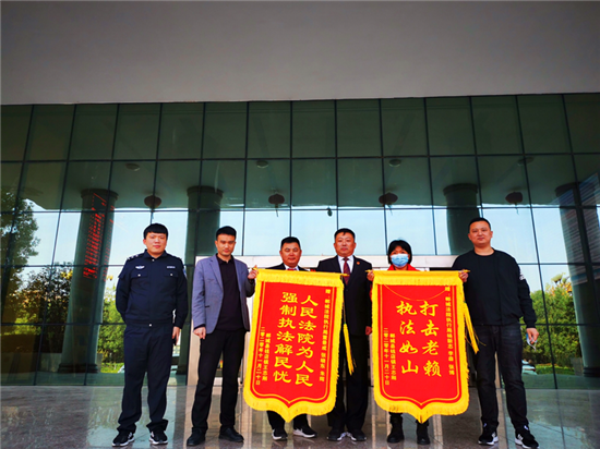 “人民法院為人民,強(qiáng)制執(zhí)行解民憂”“打擊老賴,執(zhí)法如山”。11月20日,鄲城縣王某剛把兩面鮮艷的錦旗送到鄲城縣法院執(zhí)行民警手中,眼含熱淚,感激不已。