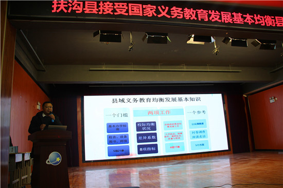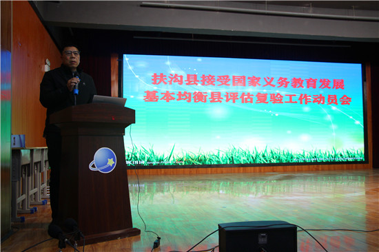 今年是河南省義務教育發(fā)展基本均衡縣評估的收官之年,扶溝縣將接受國家的抽查復驗。為進一步做好迎接國家義務教育發(fā)展基本均衡縣評估復驗工作,11月25日上午,扶溝縣教體局召開了接受國家義務教育發(fā)展基本均衡縣評估復驗工作動員會。教體局全體領導班子、股室負責人、包鄉(xiāng)人員,各鄉(xiāng)鎮(zhèn)(街道)中心校校長、普教專干、初中校長及迎驗學校校長300余人參加會議。