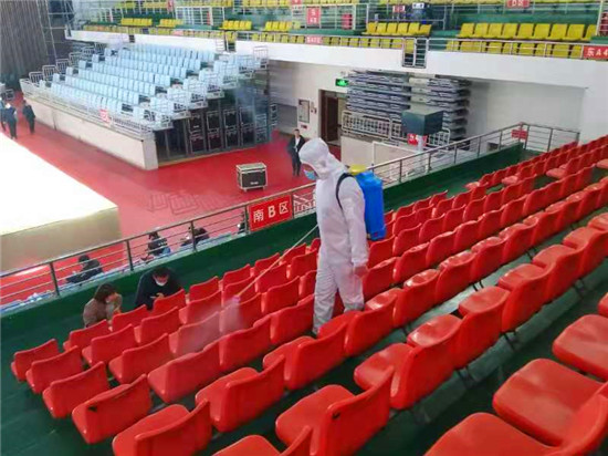 為確保疫情防控工作,保障第一屆周商大會(huì)順利進(jìn)行,11月26日至27日,30余名工作人員對(duì)市體育館內(nèi)外、周商產(chǎn)品展示展覽區(qū)進(jìn)行全面消毒殺菌,包括座椅,走廊,欄桿,門把手等,確保周商大會(huì)消殺工作不留死角。周口日?qǐng)?bào)·周道客戶端見習(xí)記者 喬小納 攝