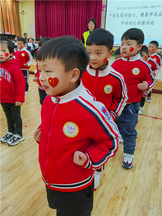 在熱情洋溢的音樂(lè)中,中班的運(yùn)動(dòng)健兒們,雄赳赳氣昂昂地入場(chǎng)了。瞧!他們個(gè)個(gè)精神抖擻,活力四射,整齊的步伐,響亮的口號(hào),無(wú)不體現(xiàn)蓮幼兒童的活潑、自信?!笆澜缯婷篮谩钡捏w操音樂(lè)響起,幼兒快樂(lè)地舞動(dòng)身體,時(shí)而裝作勇敢的海鷗,時(shí)而扮作講衛(wèi)生的小花貓,時(shí)而又成了互幫互助的企鵝?;铎`活現(xiàn)的動(dòng)物模仿操,迎來(lái)現(xiàn)場(chǎng)觀眾的熱烈掌聲。隨著一聲響亮的“嘿、哈”,幼兒扎馬步、出拳,一氣呵成。小小的身體,展現(xiàn)大大的能量。掌握中國(guó)功夫,鍛煉強(qiáng)健體魄,我們都是功夫?qū)殞?!瞧!大班幼兒在?dòng)感的音樂(lè)和老師的指揮中精神抖擻、踏著整齊的步伐入場(chǎng)了,他們靈活、有序地變換著各種隊(duì)形,像一個(gè)個(gè)快樂(lè)的小精靈。在歡快的音樂(lè)中,幼兒都十分投入,和著音樂(lè)的節(jié)奏,動(dòng)作協(xié)調(diào)、整齊有力,時(shí)而還發(fā)出“哼哈”的口令聲呢!他們開心地跳著、笑著,跳出了快樂(lè)、跳出了自信、跳出了他們對(duì)運(yùn)動(dòng)的喜愛(ài),對(duì)健康的追求。