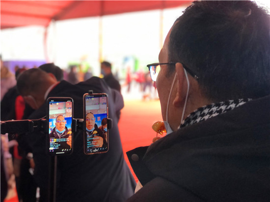 28日早上7時許,周口網(wǎng)紅俱樂部的網(wǎng)紅們和工作人員就開始為今天的直播做準(zhǔn)備,早早把直播設(shè)備搬到現(xiàn)場,進行調(diào)試。10時左右,周商產(chǎn)品展示展覽活動現(xiàn)場人頭攢動,熱鬧非凡,來自周口本地的9位網(wǎng)紅們陸續(xù)架好手機直播設(shè)備,打開補光燈,開始直播。現(xiàn)場的9位網(wǎng)紅各有特色,有打扮時髦的美女主播,有歌聲出眾的中年大叔,年齡最大的網(wǎng)紅是今年65歲的鹿邑大爺。網(wǎng)紅們一手拿著周口的蜂蜜、空心掛面、麻花、粉條、醬豆等土特產(chǎn),一邊對著手機屏幕里的粉絲熱情地展示和介紹起來,有的還直接進行現(xiàn)場吃播,不時與網(wǎng)友進行唱歌、聊天互動,吸引了不少行人前來觀看?!霸瓉碓诙兑羯峡催^網(wǎng)紅帶貨,但沒見過真人, 今天終于見到真實的網(wǎng)紅了!感覺很有意思!”前來觀展的市民劉女士說。