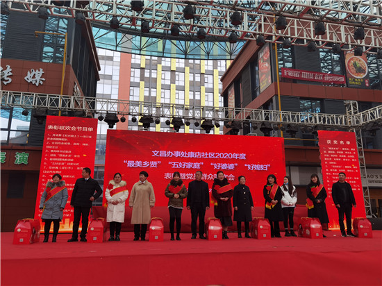 為大力弘揚(yáng)中華民族傳統(tǒng)美德,深入挖掘康店社區(qū)尊老敬孝、勤儉持家的先進(jìn)典型,積極引導(dǎo)廣大居民群眾移風(fēng)易俗、孝老愛親,促進(jìn)家庭和睦、社會(huì)和諧,11月27日,城鄉(xiāng)一體化示范區(qū)文昌辦事處康店社區(qū)舉行“最美鄉(xiāng)賢”“好婆婆”“好媳婦”“五好家庭”表彰大會(huì)暨文藝演出活動(dòng)。據(jù)悉,經(jīng)社區(qū)村民推薦,康店社區(qū)評(píng)選出的14位“最美鄉(xiāng)賢”、7戶“五好家庭”、5位“好婆婆”、7位“好媳婦”現(xiàn)場(chǎng)接收表彰。