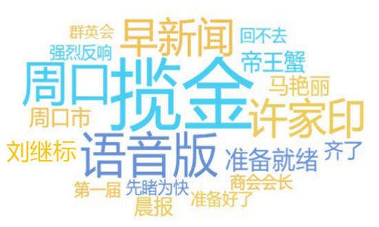 網絡熱詞反映了網民關注的重點,詞云圖中大大的“攬金”二字占據詞云圖中央,可見攬金是真的攬金,據悉,首屆周商大會簽約項目31個,總投資達429.7億元人民幣?!霸S家印”“馬艷麗”在整個圖中也是光彩奪目,作為周口人,走上北上廣深的成功人士還心心念念家鄉(xiāng)的發(fā)展,讓老鄉(xiāng)們倍感溫暖,家鄉(xiāng)人關注他們?yōu)榧亦l(xiāng)發(fā)展做出的努力和他們的動態(tài)也是再正常不過了。