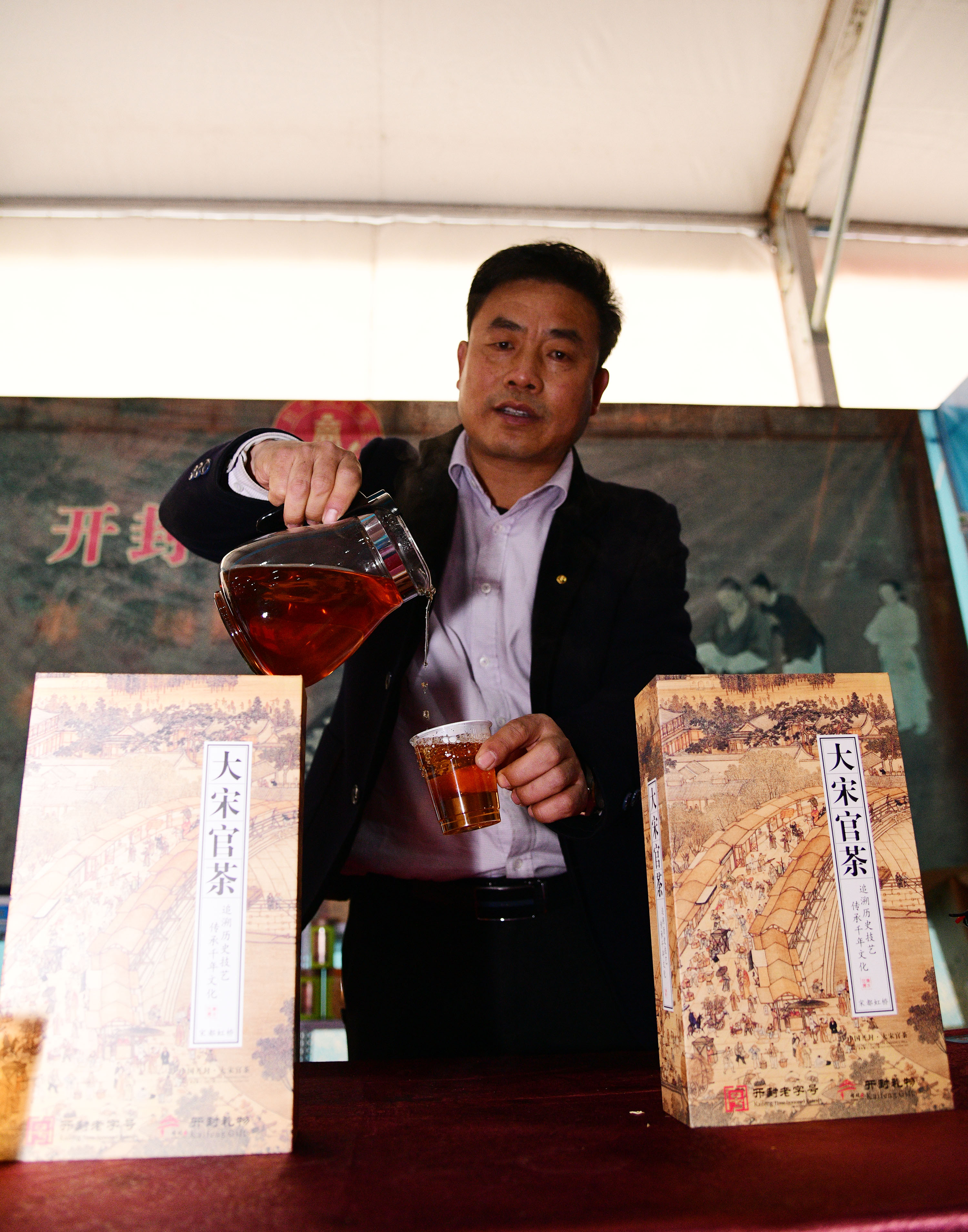 在展會(huì)上給顧客講述大宋官瓷品相的董俊,也是很厲害的周口企業(yè)家,能夠把開封老字號(hào)的官瓷,運(yùn)營(yíng)得風(fēng)生水起,大宋官瓷瓷器和汴繡被譽(yù)為七朝古都象征性的物產(chǎn),還有大宋官茶,含有被譽(yù)為茶中黃金的“金花菌”,是“河南老字號(hào)”、“非物質(zhì)文化遺產(chǎn)”,也被選入“首屆開封禮物”。大宋官茶源于宋神宗(公元1068年),它今天的主人是淮陽(yáng)區(qū)新站籍企業(yè)家牛華麗,這位淮陽(yáng)籍漢子從小在開封長(zhǎng)大,對(duì)大宋官茶獨(dú)有情種,現(xiàn)在是大宋官茶掌舵人,是大宋官茶非遺傳承人。而福興齋桶子雞老總馬勇是沈丘人,這是開封的名吃,去開封旅游,吃桶子雞和小籠包,成為游客必須品嘗的美味。馬勇參加周商大會(huì)帶回周口的桶子雞深受家鄉(xiāng)人的喜歡,一直熱賣。而“鞋品”鞋的老總侯建峰是鄲城人,他在廣州設(shè)有代加工廠,鞋子以河南為主要市場(chǎng),在開封城由五個(gè)專賣店,同時(shí)也銷往全國(guó)。